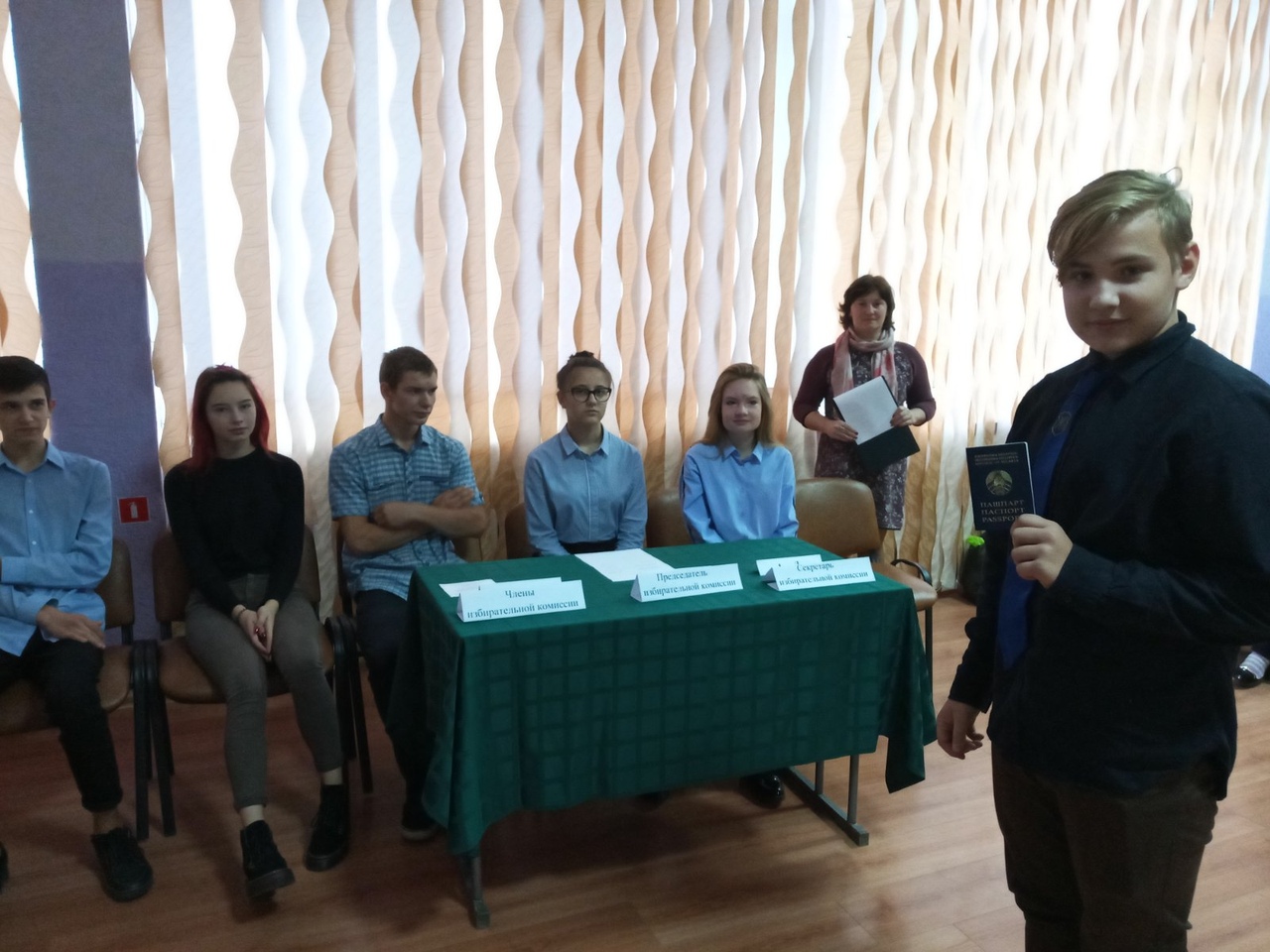 (Утыканская И.Н. участники ШАГа предлагает поучаствовать в интерактивной ролевой игре “Я – будущий избиратель”. Кто-то из ребят становится “членами избирательной комиссии”, “председателем избирательной комиссии”, “участниками голосования”, “наблюдателями”)
