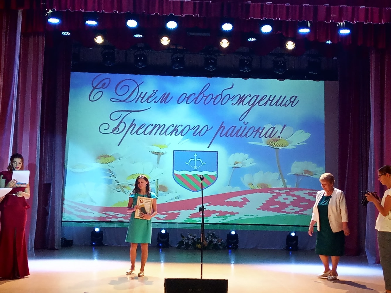 28.07.2020Сегодня, 28 июля в День освобождения Брестского района, состоялось торжественное мероприятие в РДК д. Черни, где в торжественной обстановке чествовались лучшие учащиеся Брестского района, среди которых были ребята нашей школы: Стадник Павел, Бурак Роман, Миненко Анастасия, Федонюк Анастасия, Стародубец Захар. Руководство школы выражает слова благодарности тем педагогам, которые подготовили призеров и победителей районных, областных и республиканских конкурсов , фестивалей, конференций.