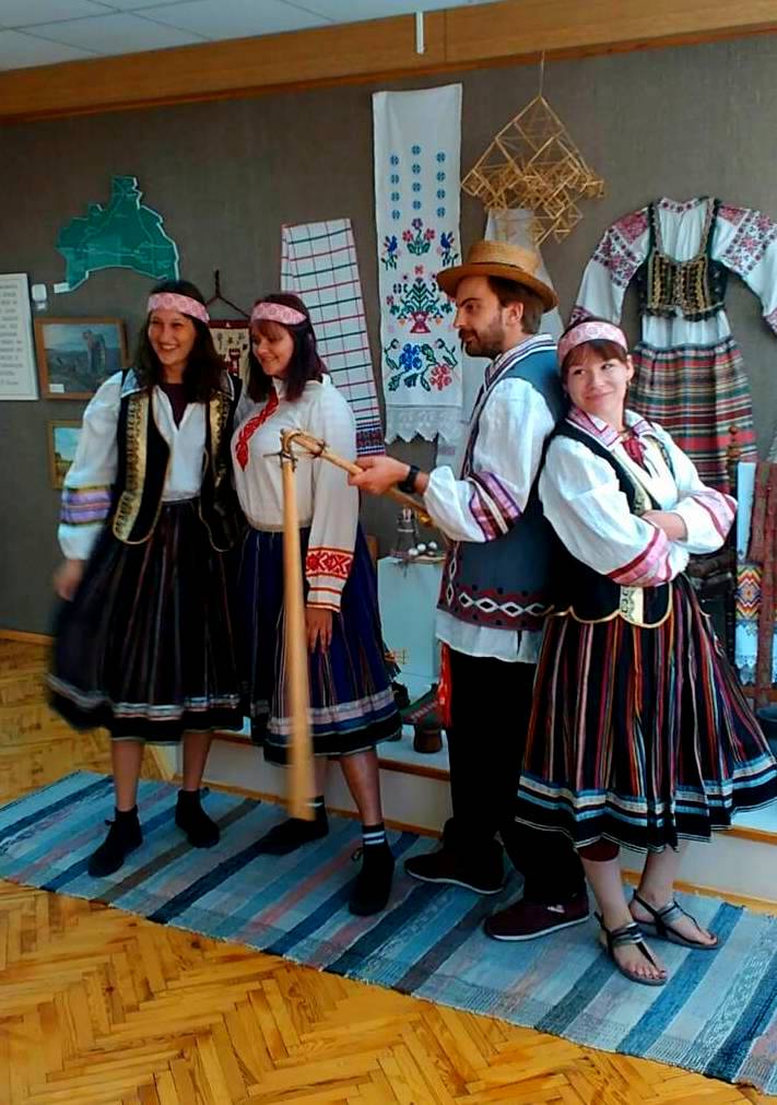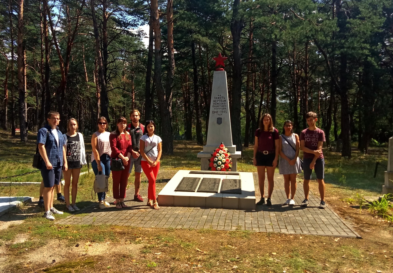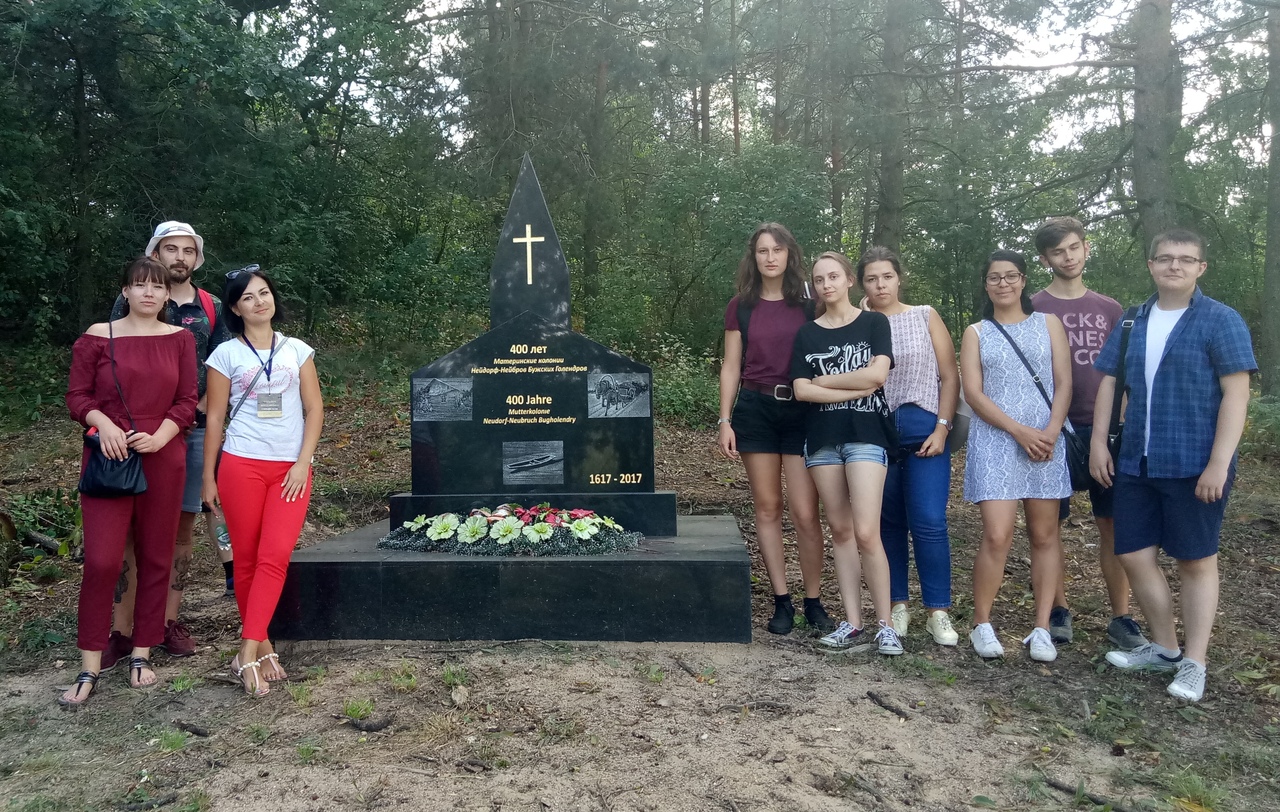 Визит волонтёров «Акции искупления» начался с посещения школы, а именно её литературно-краеведческого музея «Спадчына», где педагог Утыканская Инна Николаевна познакомила иностранных гостей с историей и бытом местечка Домачево. Гостям было предложено примерить местный национальный костюм – рубаху-«вышиванку», юбку-«домоткивку», что они и сделали. Далее группа направилась на братскую могилу жертв геноцида евреев, в 500 метрах к востоку от Домачево, где в лесу установлен памятник. Учитель школы Гавриленко Кирилл Евгеньевич рассказал об истории создания гетто в Домачево, о зверском расстреле евреев. Удалось гостям побывать и на месте поселений Нейдорф-Нейбров, основанных во второй половине XVI века вблизи Домачево немецкоязычными поселенцами-«голендрами». Здесь, в 2017 году, потомками голендров, на старом немецком кладбище, вблизи вековых дубов, был установлен памятник. Волонтёры были удивлены такой богатой историей нашего посёлка, возможностью перенестись на насколько веков назад, в прошлое. Завершился визит иностранных гостей посещением места одного из ужаснейших преступлений фашизма на землях Прибужья – места расстрела воспитанников Домачевского детского дома. Как оказалось, молодые люди ничего не знали об этой трагедии и от услышанного рассказа о расстреле детей, ни у кого не было сил, чтобы что-то комментировать, только слёзы…