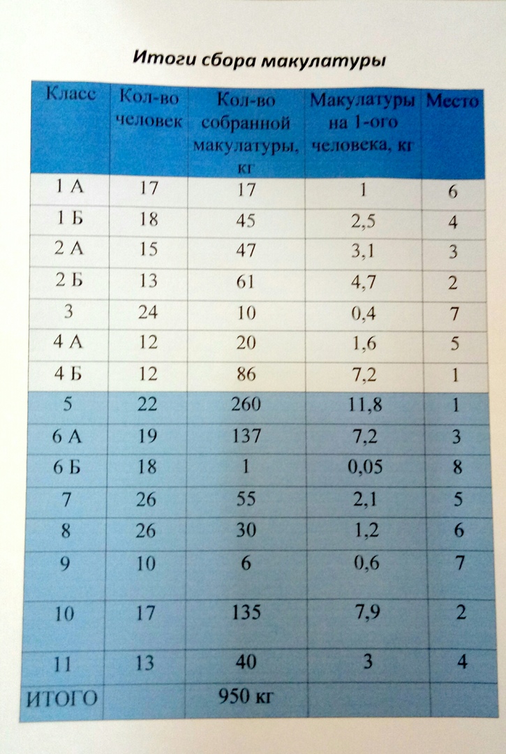 Итоги сбора макулатуры